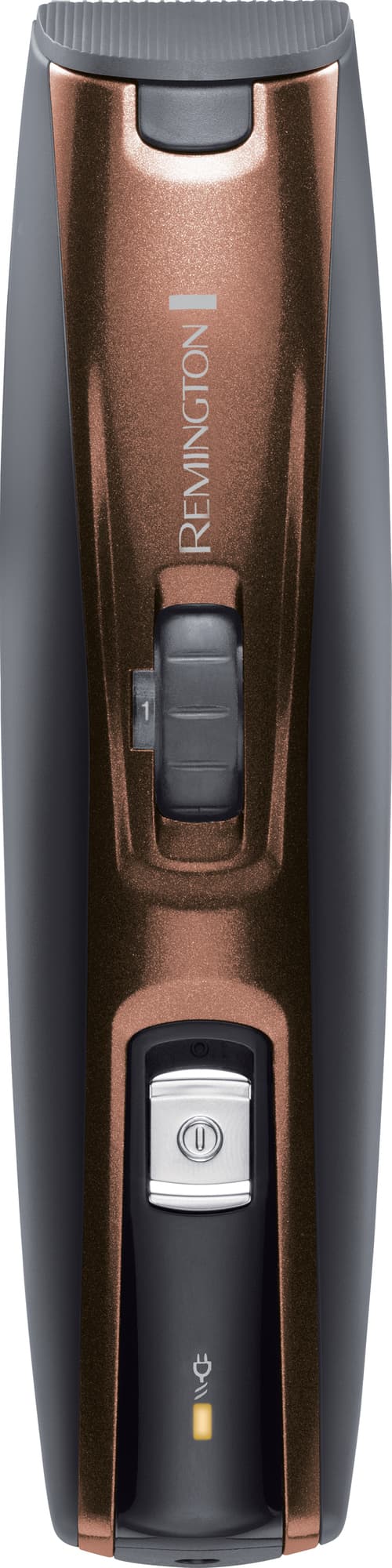 Skäggtrimmern är utrustad med titanbelagda, självslipande blad för högkvalitativt, långvarigt bruk. Den medföljande popup-trimmern är perfekt för att forma mustasch och sideburns.