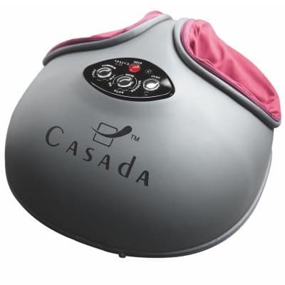 Fotmassagemaskin med roterande vibrationsmassage, lufkuddar och värmefunktion. Automatiska massageprogram och manuell inställning med olika hastigheter. Trådlös fjärrkontroll.