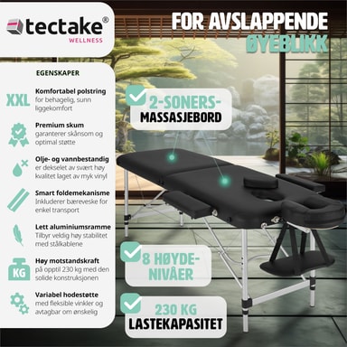 Massagebänk med 2 zoner, höjdjusterbar och hopfällbar