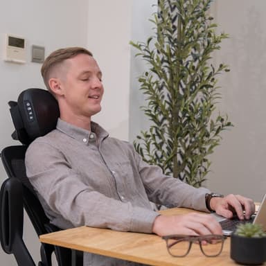 Denna högpresterande massagekudde ger en avslappnande och djupgående helkroppsmassage för nacke, rygg, axlar, ben och ländrygg. Med värmefunktion som lindrar trötthet, stress och förbättrar blodcirkulationen. Den ergonomiska designen följer kroppens naturliga kurvor för maximal komfort. Välj mellan två hastighetsnivåer, medurs eller moturs rotation och justerbar värmeterapi. Enheten stängs av automatiskt efter 15 minuter – enkel att använda, effektiv och skön för hela kroppen. Uppladdningsbar med en batterikapacitet på 2000mAh.