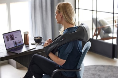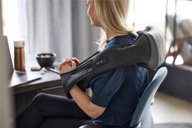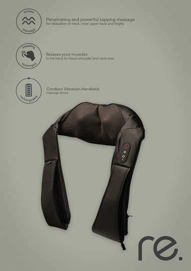 re. laddbar nackmassage kan du enkelt ta med dig på resan. Denna massageapparat tar hand om din trötta nacke, axlar och rygg och du kan välja om du vill använda den inbyggda värmefunktionen.Läs mer om produkten