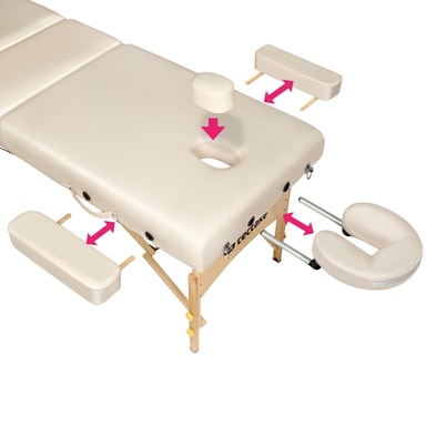 Unna dig ren avkoppling med en omfattande wellness-behandling med det bekväma massagebänkssetet Somwang från tectake. Armstöd, nackstöd, fotstöd och höjd kan justeras så att den bästa och mest funktionella positionen kan hittas för varje person och situation. Vid användning imponerar den golvvänliga massagebänken med sin stabilitet, sin lättskötta yta och sin enkla vikmekanism. De två flexibelt användbara förvaringsrullarna med praktiska handtag erbjuder extra komfort - ett massagebänksset med många möjliga användningsområden: det praktiskta massagebänkssetet Somwang från tectake.