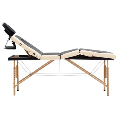 Den hopfällbara massagebänken i 4 sektioner med träram är lämplig för både amatörer och professionella massörer. Dynan som är vadderad med tjockt skum är mycket bekväm och beständig mot desinfektionsmedel och massageoljor.