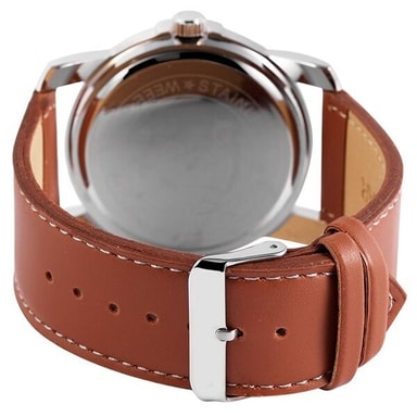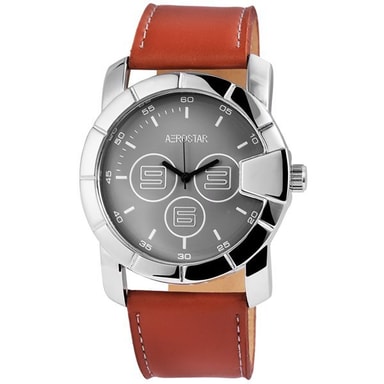 Armbandsklocka med konstläderarmband Analog herrklocka från märket Aerostar med ett högkvalitativt kvartsurverk. Läderimitationsarmbandet är 26 mm brett och öppnas med ett stiftspänne. Den totala längden är 24 cm. Metallhöljet med mineralglas har måtten 45 mm och en höjd på 10 mm. Husets lock är tillverkat av rostfritt stål.