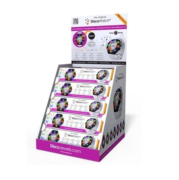 Discoklocka led 4 olika funktioner där led-lamporna lyser. Funktionen """"ljud aktiv"""", där led-lamporna blinkar till musik / ljud, är innovativa och aldrig dykt upp på marknaden i samma utförande tidigare. Ø 43 mm