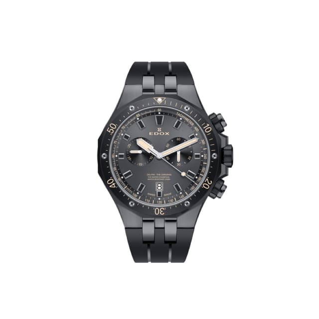 Denna edox delfin kronografklocka har en 43 mm. Rostfritt stål hölje. Klockan har en datumvisning, safirkristallglas, schweizisk kvartsrörelse och är vattentålig ner till 200 meter.