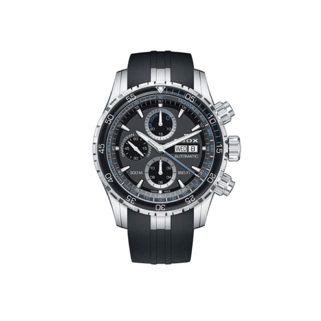 Funktioner: edox-krona och / eller pusher med dubbla o'ring, självlysande händer och / eller index, gummirem, safirkristall, skruvad krona, genomskinlig caseback, vattenbeständighet. Funktioner: kronograf, dagdatum, dykram. Material: rostfritt stål. Rörelser: automatisk. Vattenbeständighet: 300 meter - 30 atm