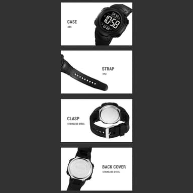 【Stabil Konstruktion】Klockan har ett ABS-boett, TPU-armband och spänne och baksida i rostfritt stål, vilket garanterar lång livslängd och komfort.