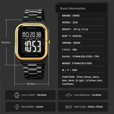 【Snygg Digital Display】SKMEI 2316 har en minimalistisk digital display med EL-bakgrundsbelysning för tydlig synlighet dag och natt.