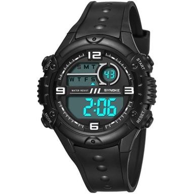 Snygg digital armbandsklocka med många användbara funktioner. Unisex modell med bekvämt armband i högkvalitativt PU-material. Färg: svart Funktioner: Veckodag, alarm, 12/24 timmars system, upplysningsfunktion. Material armband: PU-plast Modell: unisex Diameter: 46.76mm Tjocklek: 14.55mm Total längd: 250 mm Armbandets bredd: 24.28 mm