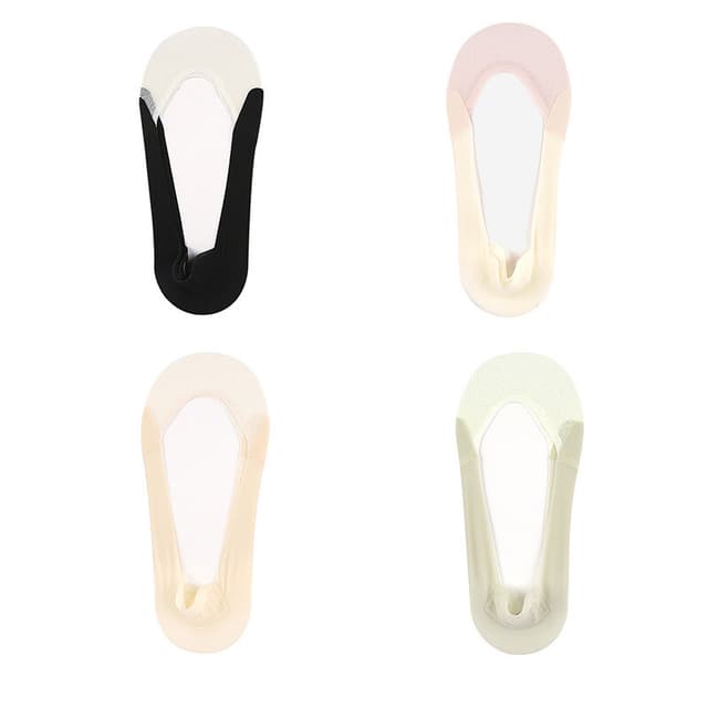 Säker passform: Njut av en säker och självsäker passform med silikonhälens grepp som finns i våra 021 tvåfärgade osynliga strumpor. Denna innovativa design förhindrar att strumporna glider ner i dina skor, vilket säkerställer att de sitter på plats oavsett hur aktiv du är. Det elastiska toppbandet ger extra stöd och förhindrar att strumporna klumpar ihop sig, vilket ger en slät och strömlinjeformad silhuett. Säg adjö till att ständigt justera dina strumpor och hej till komfort och självförtroende hela dagen.