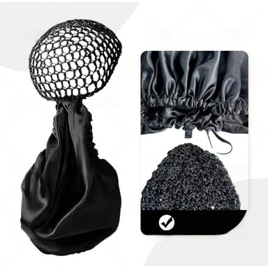 Överlägset Hårskydd: Tillverkad av högkvalitativ polyester satin, erbjuder denna sovmössa överlägset skydd för ditt hår. Det släta satin tyget minimerar friktion, vilket förhindrar frissighet, kluvna toppar och tovor. Den är designad för att hålla ditt hår snyggt på plats under natten, vilket minskar behovet av omstyling på morgonen. Den fastsatta mesh sektionen tillåter ventilation, vilket förhindrar överhettning och säkerställer en bekväm sömn. Skydda dina känsliga hårstrån och bibehåll din frisyr med detta essentiella hårvårdstillbehör. Njut av friskare och mer lättskött hår vid varje användning.