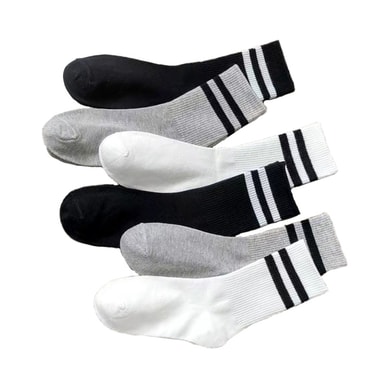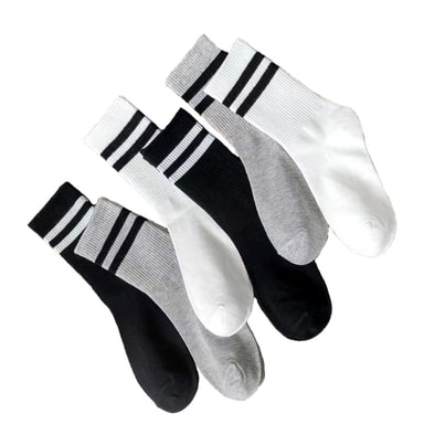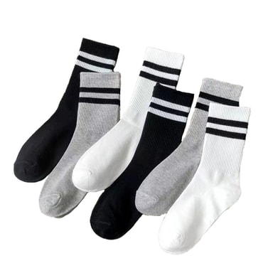 Mångsidig stil: Dessa strumpor har en klassisk längd på mitten av vaden och en elegant randig design i svart, vitt och grått, och kompletterar utan ansträngning en mängd olika outfits och tillfällen.