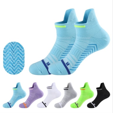 Anti-Slip prestanda: Maximera din prestanda med våra anti-slip löparstrumpor, designade för att ge överlägset grepp och stabilitet. De strategiskt placerade anti-slip greppen förhindrar att dina fötter glider inuti dina skor, vilket säkerställer ett säkert och självsäkert steg. Denna funktion förbättrar din smidighet och minskar risken för blåsor och obehag. Oavsett om du springer, sportar eller deltar i någon högintensiv aktivitet, kommer dessa strumpor att hålla dig jordad och under kontroll. Upplev förbättrad prestanda och komfort med vår pålitliga anti-slip design, perfekt för idrottare på alla nivåer.