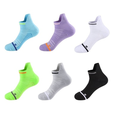 Anti-Slip prestanda: Maximera din prestanda med våra anti-slip löparstrumpor, designade för att ge överlägset grepp och stabilitet. De strategiskt placerade anti-slip greppen förhindrar att dina fötter glider inuti dina skor, vilket säkerställer ett säkert och självsäkert steg. Denna funktion förbättrar din smidighet och minskar risken för blåsor och obehag. Oavsett om du springer, sportar eller deltar i någon högintensiv aktivitet, kommer dessa strumpor att hålla dig jordad och under kontroll. Upplev förbättrad prestanda och komfort med vår pålitliga anti-slip design, perfekt för idrottare på alla nivåer.