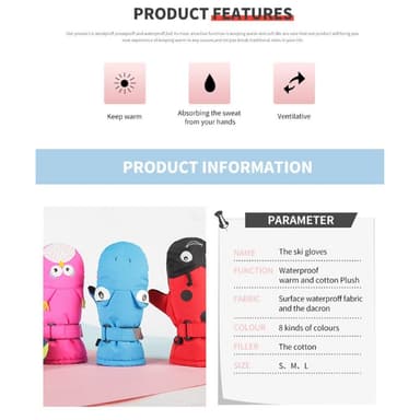 2040 1 par tecknade mönster Barnhandskar Skidåkning Cykling Vattentäta varma barnvantar - Haj / L