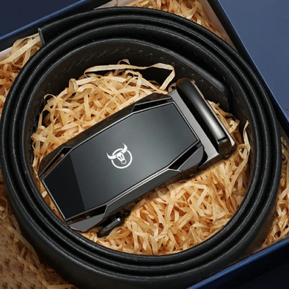 • BULLCAPTAIN 130cm Bälte Livrem Skärp Kohud Automatisk Spänne Nyckelring Tarnish