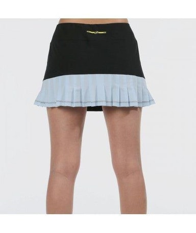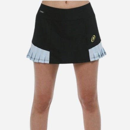 Snygg kjol från Bullpadels World Padel Tour kollektion för 2022. Kommer i stretchigt svettavvisande material för att hålla dig torr under hela padelsessionen. Ett perfekt plagg för intensiva matcher och träningar. Specifikationer: Storlekar: XS-XXL Sammansättning: 92% polyester-8% elastan Färg: Black
