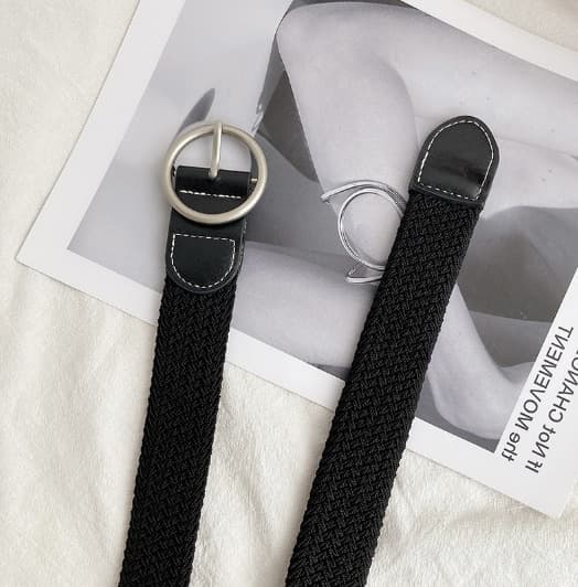 Snyggt och mångsidigt: Detta canvasvävda bälte har ett runt legeringsspänne, vilket gör det till ett moderiktigt tillbehör för olika outfits och tillfällen. Dess klassiska design kompletterar jeans, byxor, klänningar och kjolar, vilket ger en chic touch till din look.