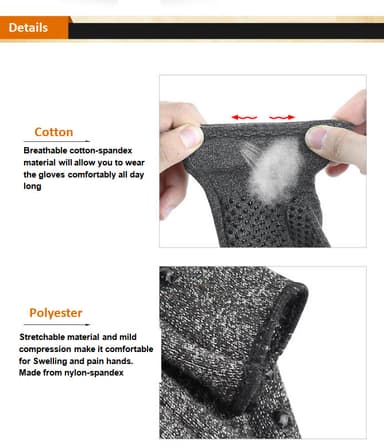Bekväm design: Kompressionshandskarna är tillverkade av högkvalitativ bomullspandex, vilket ger dem en bekväm passform som inte påverkar rörelsen i dina händer. Handsken har även en neutral färg och design som passar både män och kvinnor i alla åldrar.