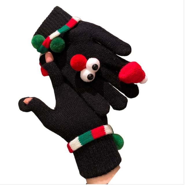 Unik och lekfull design: Stick ut från mängden med den unika och lekfulla designen på dessa julgranshandskar med stora ögon. De iögonfallande detaljerna och livfulla färgerna gör dessa handskar till en rolig och fashionabel accessoar som garanterat kommer att väcka uppmärksamhet. Det intrikata stickmönstret ger en touch av sofistikering, medan plyschdetaljerna förstärker det övergripande estetiska tilltalandet. Oavsett om du deltar i en julfest eller bara vill lägga till en touch av nyckfullhet till din vardagslook, är dessa handskar det perfekta valet. De är en bra samtalsstartare och ett roligt sätt att uttrycka din personliga stil.
