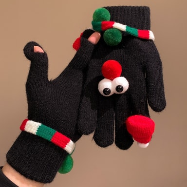 Håll dig varm och snygg i vinter med dessa julstickade plyschhandskar. Med en rolig storögondesign och vindtätt stickat material är dessa handskar perfekta för kvinnor som söker komfort och festlig glädje. Perfekt för alla vinteraktiviteter.Läs mer om produkten
