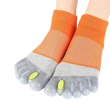 Förbättrad fothälsa på lång sikt: Främja långsiktig fothälsa med dessa justerbara tåspridarstrumpor. Genom att försiktigt justera dina tår och förhindra friktion hjälper dessa strumpor till att förbättra cirkulationen och minska risken för blåsor, förhårdnader och andra fotproblem. Tåspridarna uppmuntrar korrekt tåavstånd, vilket kan lindra trycket på nerver och leder. Regelbunden användning kan också förbättra balansen och stabiliteten, vilket gör dessa strumpor idealiska för idrottare, dansare och alla som tillbringar mycket tid på fötterna. Det andningsbara bomullsmaterialet håller dina fötter torra och bekväma, medan de justerbara separatorerna ger riktat stöd. Investera i din fothälsa och upplev fördelarna med korrekt tåjustering med dessa innovativa strumpor. De är utformade för att ge kontinuerligt stöd och främja övergripande fotvälbefinnande.
