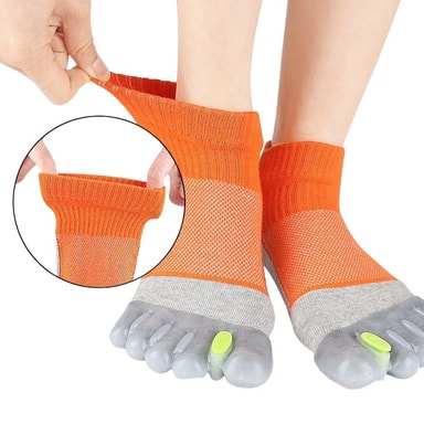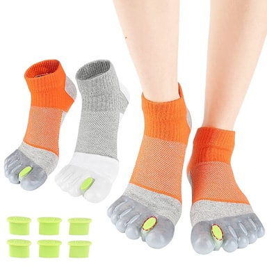 Omedelbar lindring av hallux valgus: Upplev omedelbar lindring från smärta och obehag orsakad av hallux valgus med dessa justerbara tåspridarstrumpor. De integrerade tåspridarna justerar försiktigt dina tår, förhindrar överlappning och minskar friktionen. Perfekt för individer som lider av hallux valgus, hammartå eller andra fotåkommor. Dessa strumpor främjar naturlig fotjustering och lindrar tryckpunkter. Bär dem bekvämt inuti dina skor under dagen eller när du kopplar av hemma för kontinuerligt terapeutiskt stöd. Den justerbara designen möjliggör en anpassad passform, vilket säkerställer optimal komfort och effektivitet vid korrigering av tåfelställningar och lindring av smärta i samband med hallux valgus och överlappande tår. Regelbunden användning kan förbättra fothälsan och förhindra ytterligare komplikationer.