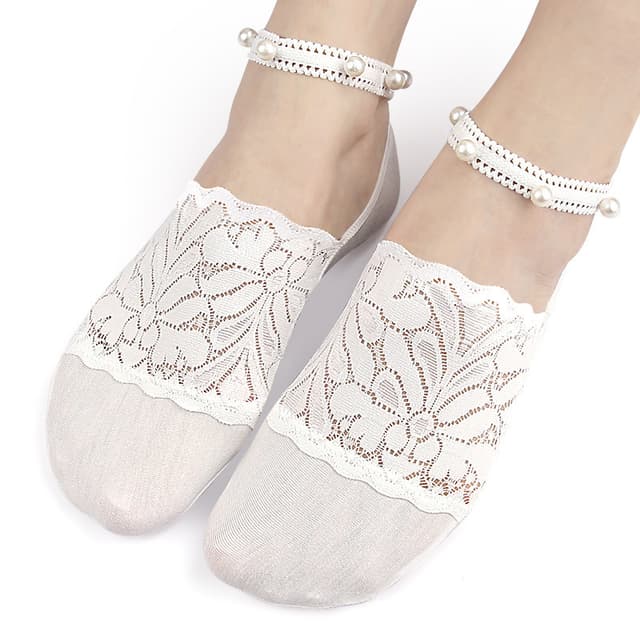 Lyft din stil med våra strumpor, med spetsdetaljer och en halkfri hälrem för en säker passform. Tillverkade av premiummaterial inklusive bomull, elastiska fibrer och pärlor, dessa strumpor erbjuder både komfort och elegans.Läs mer om produkten