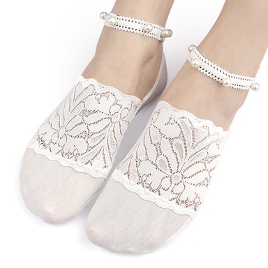 Mångsidiga strumpor med spets och pärlor (2 par) Vit