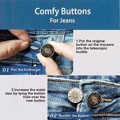 Knappförlängaren är gjord av en metallknapp med en flexibel, slitstark ögla av silikon. Med midjeförlängaren kan du enkelt lägga till ett par cm i midjeomfång och sen knäppa jeans, kjolar och byxor som vanligt igen.