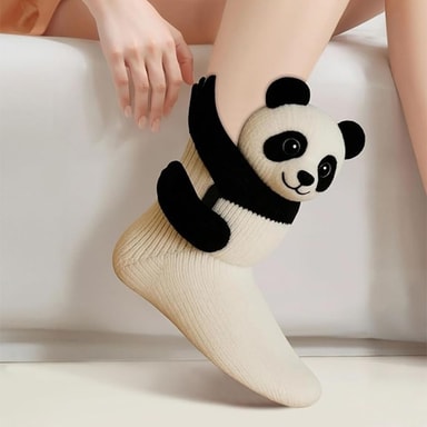 Charmig och Lekfull Design: Lägg till en touch av lekfullhet till din vardagsoutfit med dessa bedårande panda golvstrumpor. Med en förtjusande panda-design kommer dessa strumpor säkert att få dig att le. Den intrikata stickningen och uppmärksamheten på detaljer gör dessa strumpor till en utmärkande accessoar, perfekt för att uttrycka din unika personlighet och stil. Oavsett om du vill lysa upp din dag eller lägga till en lekfull touch till din outfit, är dessa panda strumpor det perfekta valet. De är också en omtänksam och charmig present till vänner och familj.