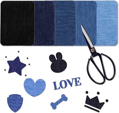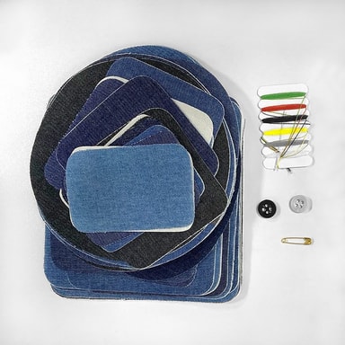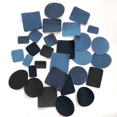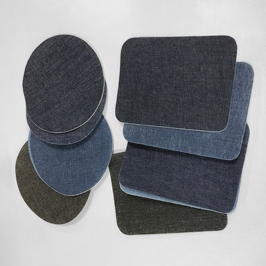Reparationslappar av slitstarkt jeanstyg i olika jeansfärger och former. Laglappar som du kan stryka på det trasiga stället är en snygg, smidig och enkel lösning, där du slipper sy. Tyglappen kan klippas till önskad form. Även fin att använda för applikationer.
