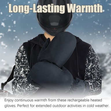 Långvarig värme: Njut av kontinuerlig värme från dessa uppladdningsbara handskar. Perfekta för längre utomhusaktiviteter i kallt väder.