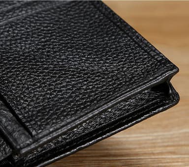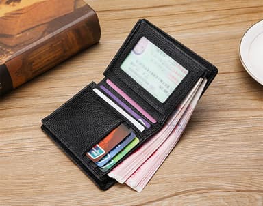 Plånboken är tillverkad av slitstarkt äkta läder och polyester. Med flera kortplatser och fickor som erbjuder plats för kreditkort, id-kort och kontanter.