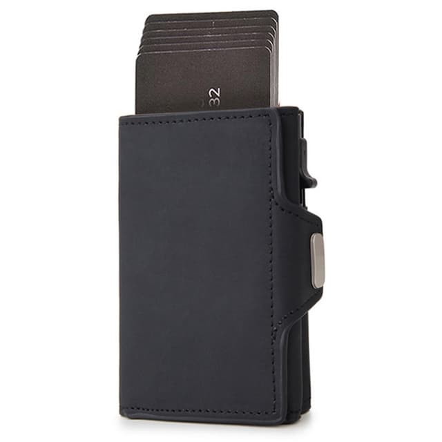 RFID-blockerande kreditkortshållare i aluminiumlegering + PU-läder, kortfodral, plånbok - svart