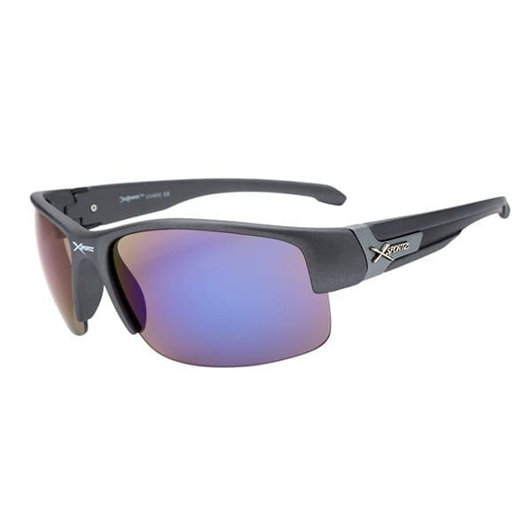 Gråa Solglasögon med blå lins Sportiga solglasögon som skyddar dina ögon från solens strålar. Hållbara bågar i plast som sitter bekvämt på huvudet. Höjd på ram: 45 mm Längd Skalm: 121 mm Bredd: 130 mm
