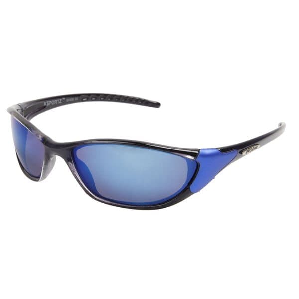 Svarta Solglasögon med blåa detaljer och blå lins Sportiga solglasögon som skyddar dina ögon från solens strålar. Hållbara bågar i plast som sitter bekvämt på huvudet. Höjd på ram: 38 mm Längd Skalm: 135 mm Bredd: 132 mm