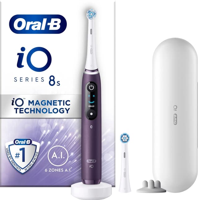 Oral-B iO 8s eltandborste 387064 är fullspäckad med smarta teknologier som kommer att förändra ditt sätt att ta hand om dina tänder. Din tandvårdsrutin blir snabbare och mer effektiv tack vare artificiell intelligens och Magnetic iO-teknik inbyggd i tandborsten. Tack vare det unika runda borsthuvudet och mikrovibrationerna kan du räkna med en skonsam borstupplevelse och friskare tandkött på bara en vecka. Anpassa din rutin och förbättra din tandhälsa tack vare smarta trycksensorer och 6 borstningslägen.