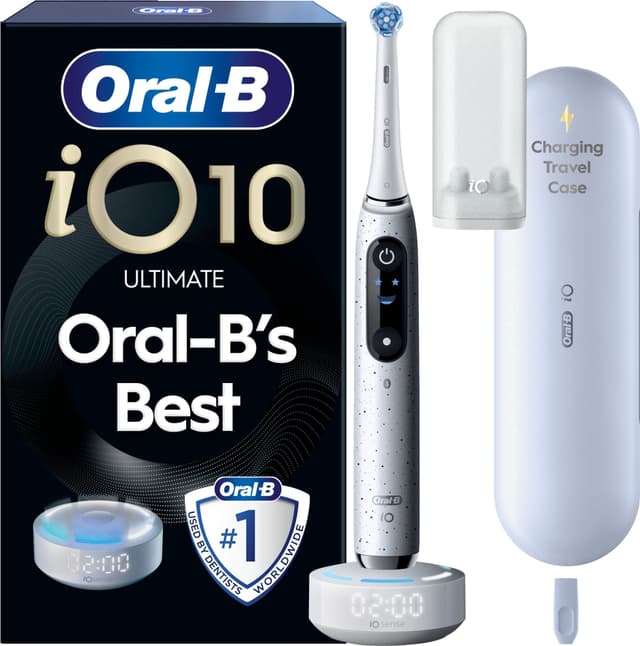 Oral-B iO10 elektrisk tandborste 067423 använder skonsamma mikrovibrationer och ett tandläkarinspirerat rundat borsthuvud för en professionell rengöring. Den förbättras av den smarta laddaren iO Sense, som ger realtidsfeedback om borstningsområde, tid och tryck. Den elektriska tandborsten har 7 rengöringslägen och en interaktiv display för enkel kontroll och feedback. Den har även en trycksensor och snabb magnetisk laddning som laddar fullt på bara 3 timmar. Ett laddbart reseetui gör den bekväm att använda på resan. Dessutom erbjuder den appanslutning med Apple Health-synkronisering för att följa upp och förbättra din borstningsrutin.