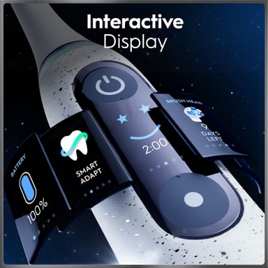 Den interaktiva displayen visar borstningslägen, följer tid och tryck samt ger användbara varningar som när det är dags att byta borsthuvud. Den inbyggda timern säkerställer att du borstar under rekommenderad tid.