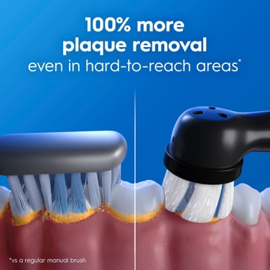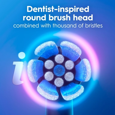 Den elektriska tandborsten kommer med ett runt borsthuvud som når områden som rektangulära borstar inte kan göra för en djupare rengöring.
