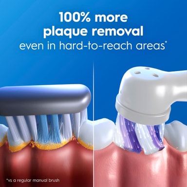 Den elektriska tandborsten kommer med ett runt borsthuvud som når områden som rektangulära borstar inte kan göra för en djupare rengöring.
