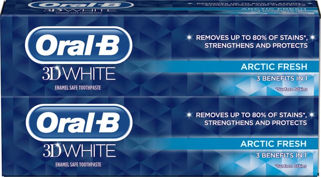 Håll ditt leende glänsande och tänderna friska och vita med Oral-B 3DWhite Arctic tandkräm 481913, som inte bara stärker och skyddar dina tänder utan också tar bort upp till 80% av missfärgningar på ytan. Denna tandkräm har även superfräsch mintsmak för coola andetag.