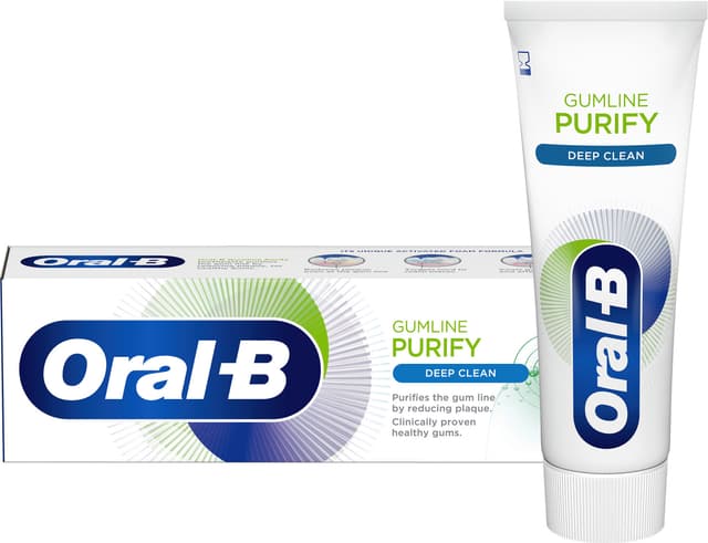 Oral-B Gumline Purify tandkräm 190464 förbättrar din tandkötthälsa. Den tar bort plack nära ditt tandkött och når även svåråtkompliga platser. Tack vare dess aktiva skumformula friskar den upp tandköttet under och efter borstningen.Läs mer om produkten