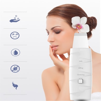 Hudskrubbaren genom huvudets vibrationer förvandlar vatten till dimman för att komma in och rengöra porer, enkelt få ut pormaskar, whiteheads, olja och annan smuts från dina porer. Gör din hud ren och slät.