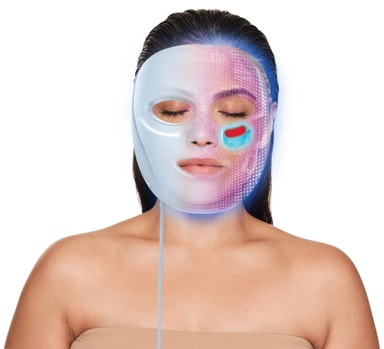 Den använder rött, blått och infrarött LED-ljus för att rikta in sig på olika hudproblem. Rött och infrarött ljus hjälper till att strama upp och jämna ut huden, medan blått ljus hjälper till att minska akne och orenheter.