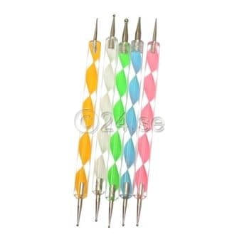 5X 2Way Dotting Pen Marbleizing Tool Nail Art Dot Paint 5st pennor lika storlekar och olika design i de båda ändarna. Du kan bla marmorera ditt material i olika färger, lägga linjer,göra mönster och använda till att sätta fast stenar. Gör superfräcka naglar med detta dotting tool ! Passar utmärkt både till lösnaglar och äkta naglar.
