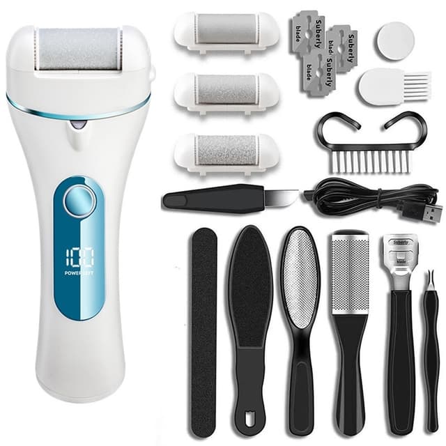 【Komplett kit】Innehåller flera manuella verktyg, reservhuvuden, rengöringstillbehör och reservblad för omfattande fotvårdslösningar.