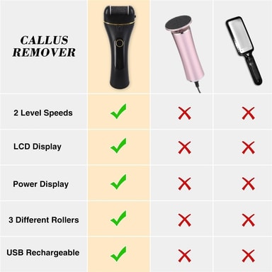【360° rullmassage】Hudvänlig rulldesign tar effektivt bort förhårdnader och död hud samtidigt som den minimerar hudskador för skonsam fotvård.